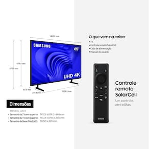 Smart TV Samsung 65" Crystal UHD 4K UN65DU7700 Gaming Hub, Visual livre de cabos, Som em Movimento Virtual, AI Energy Mode, Controle SolarCell, Alexa built in