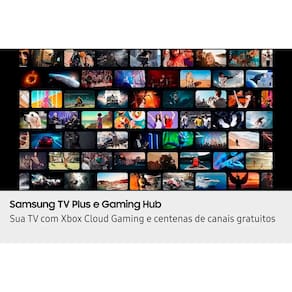 A experiência sonora é igualmente impactante: com som adaptativo e tecnologia de movimento virtual, a TV entrega áudio sincronizado em 2 canais com potência RMS de 20W, proporcionando uma imersão completa. Além disso, ela reúne uma série de recursos inteligentes, como Bixby, Alexa integrada, Samsung TV Plus e Samsung Gaming Hub, além de oferecer suporte para espelhamento de smartphone e AirPlay. Com seu design elegante ? com bordas infinitas e base sofisticada em preto ? esta Smart TV une tecnologia, conectividade e estilo para elevar seu entretenimento ao máximo.