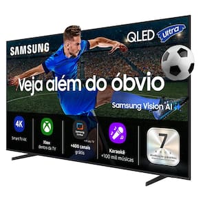 A Smart TV Samsung QLED 50 4K e a escolha ideal para quem busca qualidade de imagem superior e uma experiencia de entretenimento completa. Com resolucao 4K -3840 x 2160- e tecnologia QLED, ela oferece cores vibrantes, contraste nitido e detalhes impressionantes, potencializados pelo recurso Quantum HDR. Seu processador Q4 com inteligencia artificial otimiza automaticamente som e imagem para uma performance ainda mais imersiva. Rodando o sistema operacional Tizen, essa TV permite acesso facil e rapido a aplicativos de streaming, conectividade via Wi-Fi e Bluetooth 5.3, alem de contar com entradas HDMI e USB para conectar diversos dispositivos. Com tela plana de 50 polegadas e design moderno, ela se encaixa perfeitamente em qualquer ambiente.