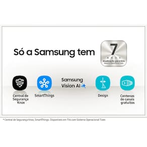 Processador com AI, Controle por Gestos, Modo AI, 7 Anos de Atualização, Alexa integrada, Bixby, Wi-Fi, Painel 120hz, OLED HDR, Dolby Atmos, Som em Movimento Virtual, Q-Symphony, Amplificador de Voz Ativo, Som adaptativo Pro, Áudio Imersivo 360, Smart TV Tizen, Comando de Voz à distância, Samsung TV Plus, Navegador (Web Browser), Hub SmartThings / Hub Matter / Funcionalidade IoT-Sensor / App de Controle Remoto, Auto Game Mode ALLM, Game Motion Plus, Dynamic Black EQ, VRR, Som Surround, Tela Super Ultra Wide e Menu de Jogo, Game Bar, Zoom do Minimapa, Hue Sync, Tecnologia FreeSync VRR: FreeSync Premium, Gaming Hub, Modo Game com AI, Design Contorno, Borda 4 sem moldura, Tipo de suporte: LINEAR SIMPLES, EPG, PVR estendido, Controle de IP, Idioma: Idiomas locais, Sensor Ecológico, Economia de energia automática, Desligamento AutomáticoVendido e entregue por ZSHOPS A LOJA DE TUDO