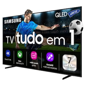 Imagine uma tela que nao apenas exibe imagens, mas encanta os sentidos. TV que entende o que voce quer ver, como voce quer ver e ate com quem quer jogar. A Samsung QLED 65 Vision AI nao e so grande em tamanho. E gigante em tecnologia, inteligencia e estilo.