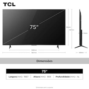 Smart TV TCL 75 Polegadas UHD 4K P6K WiFi Bluetooth Google TV 3 HDMI HDR10+ Dolby Audio 75P6K - 32540