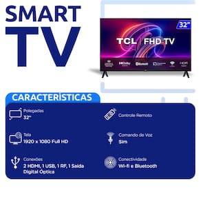 Tecnologia, alta resolução, som e imagem de qualidade em um único local produto. Conheça agora a Smart TV TCL Android TV! Ela conta com tela de 32 polegadas com resolução full HD, som de 16W, recursos smart TV e muito mais. Confira mais detalhes: