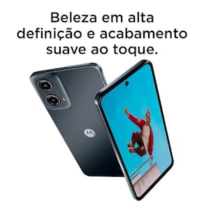 No telefone, assim como na vida, os detalhes importam. Conheça o design incomparável do moto g34 5G com uma edição especial em Vegan Leather. Na tela de 6,5''com taxa de atualização de 120 Hz, os filmes são mais imersivos e os jogos têm mais fluidez. Ouça todas as notas das músicas com a clareza impressionante do Dolby Atmos nos alto-falantes estéreo. Tire fotos nítidas mesmo em pouca luz usando a câmera de 50 MP com tecnologia Quad Pixel, sorria para todo mundo ver com a câmera de selfie de 16 MP e aproveite os recursos do Ajuste automático do Google Fotos diretamente no aplicativo de câmera. Tenha liberdade em suas mãos com RAM Boost (Otimização da RAM) e aproveite a velocidade 5G ao máximo com o processador octa-core Snapdragon 695 5G. Aproximou, pagou. É rápido e seguro com a tecnologia NFC6. O moto g34 5G dá vida aos detalhes. Beleza em alta definição e acabamento suave ao toque. Tela de cinema com som Dolby Atmos Câmera com Inteligência Artificial e Google Fotos. Aproximou, pagou com segurança e rapidez. Seja multitarefas com RAM Boost: liberdade em suas mãos com até 8 GB de RAM Características Sistema Operacional Android 14 Tela Tamanho: 6,5'' Resolução: Full HD (30 fps) Conectividade 5G Wi-Fi 802.11 a/b/g/n/ac 2,4 GHz e 5 GHz EDGE GPRS Bluetooth NFC Capacidade 128 GB * Extensão para Cartões de Memória: Micro SD 1 TB * Parte da memória interna já é utilizada pelo sistema operacional e aplicativos pré-instalados Processador Snapdragon 695 (2,2 GHz Octa-Core) Memória RAM 4 GB Câmera Traseira 50 MP OIS + 2 MP Flash Câmera Frontal 16 MP Outros Recursos Tipo de Chip: Nano (não incluso) Quantidade de Chip: 2 Rádio: Sim, Banda estendida GPS MP3 Recursos de Som: 2 Alto-falantes Dolby Atmos Alerta Vibratório Recursos de Chamadas: Chamada Inteligente Banda: 2G - GSM 850/900/1800/1900 MHz, 3G - WCDMA 850/900/1700/1900/2100 MHz, 4G - LTE, B1/B2/B3/B4/B5/B7/B8/B12/B13/B17/B25/B26/B28/B38/B40/B41/B42/B66, 5G - NR n1/n2/n3/n5/n7/n26/n28/n38/n40/n66/n78 Viva-voz Bateria 5000 mAh Cor Preto EAN 7892597353613 Especificações Técnicas Modelo: XT2363-1 Frequência: 802.11 a/b/g/n/ac 2,4 GHz e 5 GHz Garantia: 12 meses Certificado de Homologação da ANATEL: 20341-23-00330 Dimensões e Peso Dimensões do produto sem embalagem (AxLxP): 162,7x74,6x7,98 mm Dimensões do produto com embalagem (AxLxP): 172x86x45 mm Peso do produto sem embalagem: 0,17 Kg Peso do produto com embalagem: 0,38 Kg Itens Inclusos 01 Telefone 01 Manual 01 Cabo USB-A / USB-C 01 Carregador Turbopower 20 W 01 Ferramenta de Remoção do Chip Ean: 7892597353613