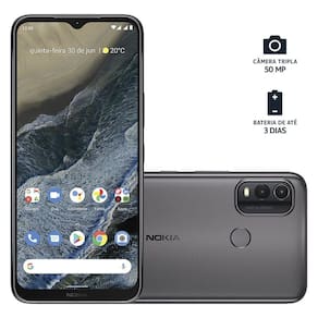 Marca: Nokia Modelo: Smartphone Nokia G11 Plus 4G 128GB 3GB RAM Tela 6,5 HD Câm Dupla 50MP Android 12 Cinza - NK095 Cor: Cinza Tela: 6,5 HD + V-notch 90Hz Processador: Spreadtrumm T606 Octa-Core 1,1GHz Conectividade: 4G, GPS e Bluetooth 5.0 Memória RAM: 3GB Memória Interna: 128GB, sendo 64GB interno + 64GB via cartão SD, expansível com cartão Micro SD até 512GB Câmera Traseira Dupla: 50MP+2MP Câmera Frontal: 8MP Bateria: 5000mAh Sistema Operacional: Android 12 -com atualizações- Desbloqueio: Digital e facial Largura do produto: 7.59cm Altura do produto: 8.55cm Comprimento do produto: 16.48cm Peso do produto: 191.000g Kit Completo: Capa + Película + Fone + Carregador + Cabo Garantia: 1 ano