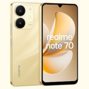 O Realme Note 70 Dourado combina visual moderno com acabamento bem construído. A cor dourada confere um aspecto elegante e marcante ao aparelho. O formato facilita a utilização prolongada, mantendo sensação agradável durante o manuseio. As bordas foram pensadas para garantir estabilidade na pegada e os botões foram posicionados de forma acessível. O módulo de câmera se integra ao conjunto de forma harmoniosa, contribuindo para um visual equilibrado e atrativo. É um design pensado para quem busca um smartphone com aparência diferenciada e adequada ao uso diário.