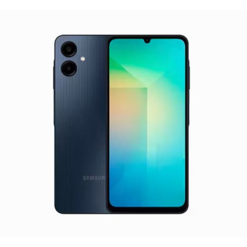 O Galaxy A06 apresenta um design com acabamento elegante e oferece 3 opções de cores para você escolher a que mais combina com você: Azul Escuro, Branco e Verde.
