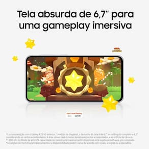 Características: Marca: Samsung Modelo: Galaxy A36 5G Processador: Qualcomm | Snapdragon 6 Gen 3 Memória Interna: 128 GB Memória RAM: 6 GB Recursos da Tela: Tela 6.7 120Hz Quantidade de Câmeras Traseiras: 3 Recursos da Câmera: 50MP + 8MP + 5MP Resolução da Câmera Frontal: 12MP Formatos de Gravação de Vídeo: UHD 4K (3840 x 2160) | @30fps Resolução de Vídeo: UHD 4K (3840 x 2160) | @30fps Zoom Digital (x): Zoom Digital até 10x Capacidade da Bateria: Bateria de 5000mAh Tecnologia: 2G, 3G, 4G e 5G Conexões: Bluetooth v5.3 / Conexão Wi-Fi / Roteador Wi-Fi / NFC Sistema Operacional: Android Tipo de Conector: USB Type-C Tipo de Chip: Nano-SIM (4FF) Quantidade de Chips: 2 Código da Homologação: 107352400953