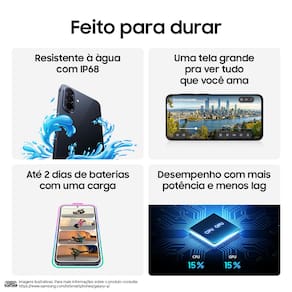 Conectividade 5G e Android 16O Galaxy A57 5G também se destaca pela durabilidade, com