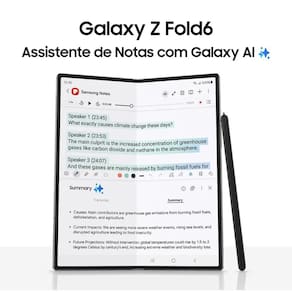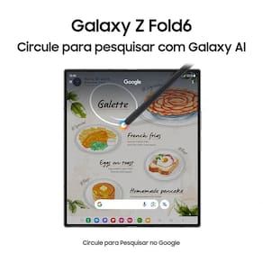 O Galaxy Fold6 ainda conta com diversas outras novidades, junto ao Galaxy AI. Kit Embalagem: (Aparelho celular, carregador, cabo USB, Extrator de Chip e manual do usuário).