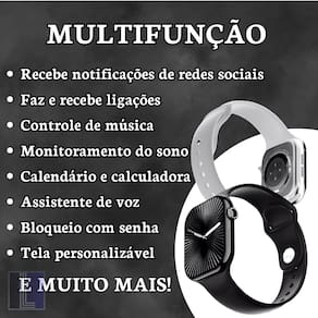 Smartwatch HW Watch X 46mm com tela de 2” HD, monitoramento de saúde (frequência cardíaca, pressão arterial, oxigênio no sangue, sono), conectividade Bluetooth para chamadas e notificações, modos esportivos, NFC, compatibilidade iOS/Android e carregamento por indução.Processador