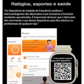 Apresentamos o incrível Smartwatch HW8 Ultra, o companheiro perfeito para a sua vida conectada e ativa! Com recursos avançados e design elegante, este é o relógio inteligente que vai revolucionar a forma como você interage com o mundo ao seu redor.Com sua tela touchscreen de alta definição, o Smartwatch HW8 Ultra proporciona uma experiência visual impressionante. Navegue pelos menus, visualize notificações e personalize o mostrador com facilidade, tornando o uso diário uma verdadeira experiência sensorial.Este dispositivo é muito mais do que um relógio. Com recursos de monitoramento de saúde abrangentes, ele mantém o controle de sua frequência cardíaca, qualidade do sono, passos dados e calorias queimadas. Acompanhe seu progresso fitness e estabeleça metas personalizadas, enquanto recebe insights valiosos para melhorar sua saúde e bem-estar.Mantenha-se conectado o tempo todo! Receba notificações de chamadas, mensagens, e-mails e redes sociais diretamente em seu pulso, sem precisar pegar o smartphone. Nunca mais perca uma mensagem importante ou uma ligação urgente, esteja você em uma reunião, praticando esportes ou simplesmente em movimento.O Smartwatch HW8 Ultra é um assistente pessoal completo. Com sua funcionalidade de controle de voz, você pode executar comandos, enviar mensagens e fazer pesquisas apenas falando. Seja o seu assistente para encontrar o caminho certo, marcar compromissos ou tocar suas músicas favoritas, tudo é possível com apenas um comando de voz.Sua resistência à água permite que você o use enquanto nada, toma banho ou se exercita sob chuva intensa, sem se preocupar com danos. Além disso, a bateria de longa duração garante que você possa aproveitar todos esses recursos incríveis por horas a fio, sem interrupções.O Smartwatch HW8 Ultra é mais do que apenas um acessório. É uma declaração de estilo e sofisticação. Com seu design moderno e acabamento de alta qualidade, ele complementa qualquer estilo, seja para o trabalho, para o lazer ou para ocasiões especiais. Esteja sempre na moda, com um toque de tecnologia avançada em seu pulso.Não espere mais para aproveitar todos os benefícios deste incrível dispositivo. Experimente o Smartwatch HW8 Ultra e mergulhe em um novo mundo de conectividade, saúde e estilo. Seja o protagonista da sua vida, com um assistente inteligente que está sempre ao seu lado.Funções-Pressão arterial-Batimentos cardíacos - Ligado 24 horas-Contador de passos-Contador de calorias-Distância aproximada-Monitoramento do sono-Despertador-Cronometro-Calculadora-Multi-modo sport (Caminhada, corrida, basquete, pular corda, futebol, musculação, etc...)-Luz de notificação- E muito Mais