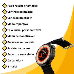 Smartwatch S9 Ultra Pro Redondo 49mm NFC Chamadas Notificações - Cor: Laranja