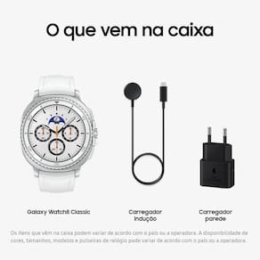 Galaxy Watch8 Classic com design almofadado, Sistema de Tecnologia de Encaixe aprimorado para troca de pulseiras, LTE, Tela em Cristal de Safira, GPS de Dupla Frequência, Monitoramento avançado de saúde, sono e de coração, Processador de 3nm, Treinador de corrida personalizado, Tela incrivelmente brilhante com 3.000 nits, Galaxy AI.Processador