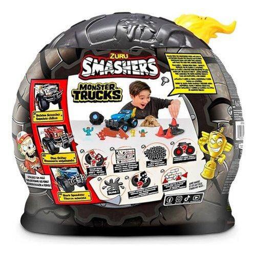 Construa, corra e esmague com a emocionante série de Smashers Monster Trucks! Prepare-se para uma aventura cheia de ação com o Monster Truck Surprise. Com este brinquedo incrível, você poderá construir, correr, colidir e esmagar como nunca. O desafio começa ao buscar as peças do seu Monster Truck, atravessando areia e slime em uma busca emocionante. Construa o seu caminhão e prepare o motorista antes de se PREPARAR para um incrível acidente esmagador contra a parede.