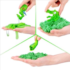 Conteúdo: 3 dinossauros colecionáveis, 1 slime, 1 dino slime, 1 mini ovo dino e 1 saco de meteorito