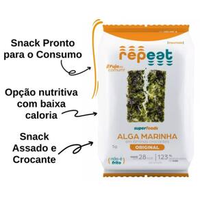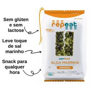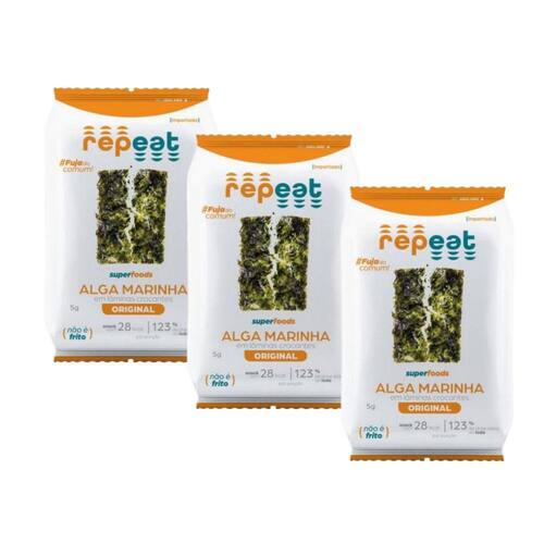 Kit com 3 unidades de snack de alga marinha Repeat sabor tradicional com 5 gramas cada.