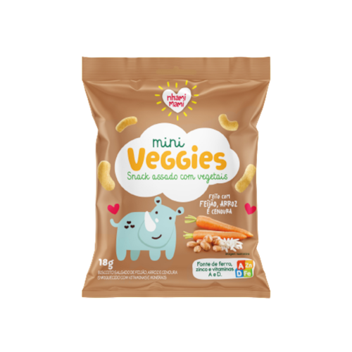 Feito com ingredientes 100% naturais, integrais e sem gordura trans ou aditivos artificiais, o Snack Infantil Mini Veggies Feijão e Cenoura Nhami Mami é perfeito para um lanchinho saudável e equilibrado.