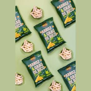 Salgadinho assado a base de grão de bico, arroz e aroma natural de cebola e salsa.