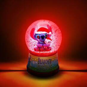 Sacuda seus fãs com este globo de neve colecionável da Disney Lilo & Stitch! Com Stitch vestido para as festas de fim de ano e o texto "Season's Greetings", esta divertida luva de neve mede aproximadamente 15 cm de altura – o tamanho perfeito para sua mesa de escritório, estante de casa e muito mais! Melhor ainda, acende (pilhas incluídas)! Globo de neve oficialmente licenciado. Produzido pela Silver Buffalo, uma empresa de artigos domésticos e decoração de casa com sede no coração da cidade de Nova York. Exclusivo da Toynk! - Prepare-se para um feriado selvagem: o Stitch chegou para agitar suas férias. A diversão de verão de Lilo and Stitch da Disney mudou-se para o inverno com este globo de neve exclusivo com extraterrestre residente no Havaí. - TENHA UM NATAL AZUL: A Experiência 626 está aqui para lhe desejar "Season's Greetings" neste globo cheio de alegria vermelha cintilante de Natal. A cena festiva mostra Stitch segurando a boneca favorita de Lilo, Scrump, ambos com chapéus de Papai Noel combinando. - Visor de iluminação elegante: o globo de neve emite um brilho colorido e cheio de glitter quando você aciona o interruptor de luz liga/desliga na parte inferior da base de cerâmica. Funciona através de duas baterias de botão LR44 (incluídas). - NAUGHTY OU BOTA: sua mesa, estante de livros ou área de artesanato ficarão fora deste mundo com esta lembrança alegre orgulhosamente em exibição. Não espere nada além de diversão nesta temporada de um dos personagens mais loucos da Disney. - Colecionável oficial da Disney: o visitante alienígena favorito de todos está aqui para desfrutar de um momento festivo de alto jinx. Você vai se divertir com este globo de neve oficialmente licenciado inspirado em Lilo & Stitch, da Disney.