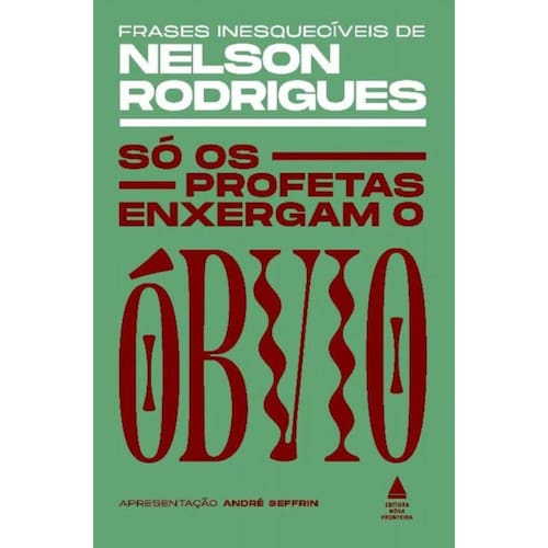Muito além de um mero recorte de frases inesquecíveis sobre os mais diversos temas, Só os profetas enxergam o óbvio, apresentado pelo crítico André Seffrin, é um prato cheio para quem quer entrar no universo rodriguiano e conhecer ou rever suas opiniões firmes, por vezes polêmicas, mas incrivelmente atuais. Ácidas, divertidas, espantosas, proféticas, impactantes, geniais: as frases de Nelson Rodrigues fazem dele, como escreveu Carlos Heitor Cony, de longe o maior fabricante de bordões da nossa literatura .