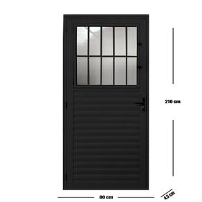 NÃO recomendamos o uso de espuma expansiva na instalação, pois pode danificar o produto. Deve estar em nível e prumo e é imprescindível estar em esquadro para que a funcionalidade e qualidade sejam de 100%. Largura do Batente: 4,5 cm Acompanha Batedor: Não Acompanha Batente: Sim Acompanha Dobradiça: 03 Acompanha Fechadura: Sim Acompanha Guarnição: Não Acompanha Manual de Instalação: Sim Acompanha Puxador: Não Acompanha Trinco: Não Altura: 210 cm Ambiente Principal: Área de Serviço Ambientes Recomendados: Externo, Interno Cor: Preto Cor do Batente: Preto Cor do Produto: Preto Cor do Produto: Preto Cor do Vidro: Incolor Elétrica: Não Escala de Brilho: Semi-Brilho Espessura: 4,5 cm Espessura do Vidro: 3 mm Isolamento Acústico: Não Itens Inclusos: 01 porta Lado de abertura: Direita Largura: 80 cm Linha ou Coleção: Linha 25 Manual de Montagem e Instalação: https://cdn2.madeiramadeira.com.br/atributo/esquadrias-bergame/2312636-5103-17260808427602.pdf Material da Dobradiça: Alumínio Material do Batente: Alumínio Necessita Montagem: Não Número de Folhas: 01 Origem do Produto: Nacional Peso: 15 kg Possui Grade: Sim Recomendações de Uso, Manutenção e Limpeza: Massa de polir, pano perflex Textura da Porta: Veneziana Tipo de Dobradiça: Simples Tipo de Parede: Alvenaria Tipo de Porta: Abrir Tipo de Vidro: Mini Boreal Vidro incluso: Sim Marca: Esquadrias Bergamo