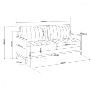 Caracter?sticas: - Estrutura Madeira de Eucalipto - Assento fixo com espuma D23, percinta el?stica, 1 Mola Bonnel 10cm no meio de cada assento, manta de fibra siliconada - Encosto fixo com 2 almofadas remov?veis, 100 fibra siliconada - Bra?o com Espuma D16, laterais em corano - 5 P?s de madeira - Suporte de peso 90 kg por assento - Garantia de 03 meses
