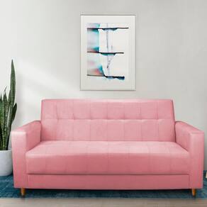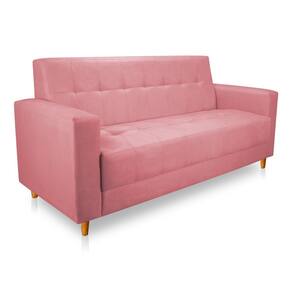 Sofá 03 Lugares 180cm Atenas Suede Pés Castanho - Pallazio - Rosa