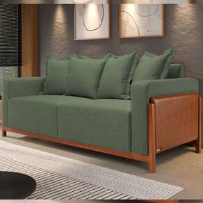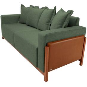 Sofá 03 Lugares Para Sala De Estar 198 cm Khali B04 Linho Verde Couríssimo Whisky - Lyam