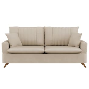 Sofá 160cm 2 Lugares Com Almofadas Pés Curvos Veras Suede D05 Bege Claro - Mpozenato