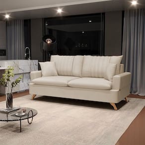 Conforto e beleza são as palavras que definem o Sofá 160cm 2 Lugares com Almofadas Pés Curvos Veras Suede D05 Bege Claro, da Mpozenato, confira!