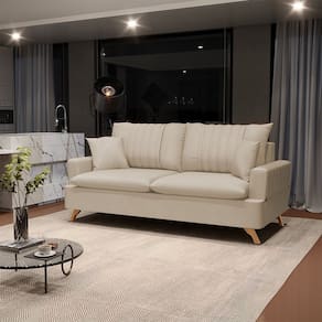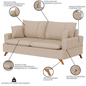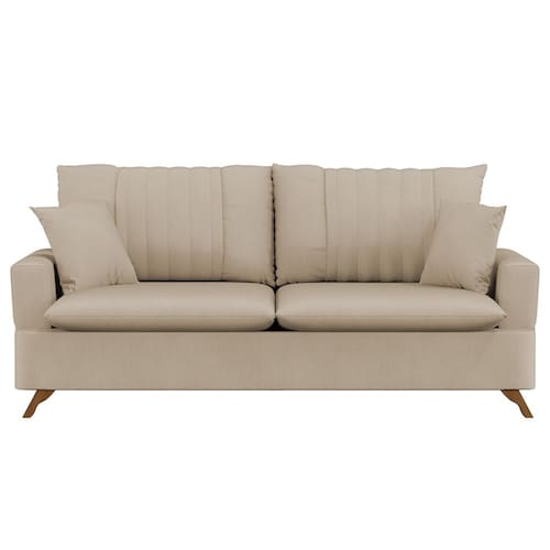 Conforto e beleza são as palavras que definem o Sofá 160cm 2 Lugares com Almofadas Pés Curvos Veras Suede D05 Bege Claro, da Mpozenato, confira!