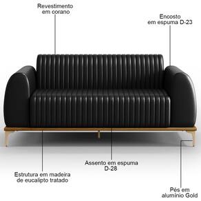 Sofá Molino! A princípio, ele possui base em madeira de eucalipto envernizada com pés em alumínio, estrutura em misto de madeira com MDF e OSB e a parte estofada é em espuma D-23 no encosto e espuma D-28 no assento. Além desses detalhes, também é revestido em tecido PU, conferindo requinte e uma dose extra de durabilidade e resistência.