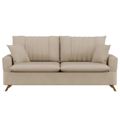 Procurando o Sofá ideal para a sua casa? Conheça o Sofá 180cm 3 Lugares com Almofadas Pés Curvos Veras Suede D05 Bege Claro, da Mpozenato e encante-se!