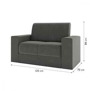 Dimensões: 2 Lugares Altura: 84 cm Largura: 125 cm Profundidade: 70 cm