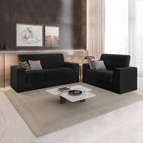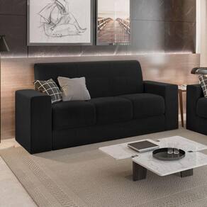 Sofá 2 E 3 Lugares Recife Veludo Preto Mamflex Preto O Sofa 2 e 3 Lugares 1050 Recife da Mamflex e perfeito para o seu lar! Com seu assento, braco e encosto em espuma de densidade 18, revestimento em tecido veludo e estrutura em madeira eucalipto. Este modelo possui percinta elastica, o que confere maior durabilidade e resistencia por mais tempo. Vai deixar o ambiente muito mais aconchegante e perfeito para relaxar e descansar! Dimensoes: 2 Lugares Altura: 84 cm Largura: 125 cm Profundidade: 70 cm
