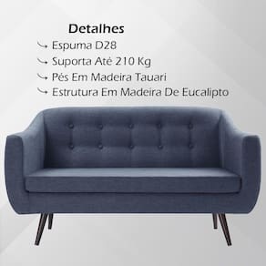 Sofa 2 Lug Pes Tabaco 135 cm 7017, uma peça com design marcante, confortável e resistente, que deixará seu ambiente muito mais elegante. Estrutura em Madeira de Eucalipto e Madeira Tauari, com pintura em acabamento (Fosco). Composto por encosto e assento estofados com espuma D-28 de altíssima qualidade e procedência, encosto com botonês, que dará um toque contemporâneo em sua decoração, revestimento em Tecido Resistente, e conta com pés de madeira cor tabaco. Suporta até 210 Kg. Ideal para quem prioriza qualidade, sem abrir mão do conforto e beleza no móvel que é a estrela da sala de estar. Este móvel chegará na sua casa separado em 01 volume.
