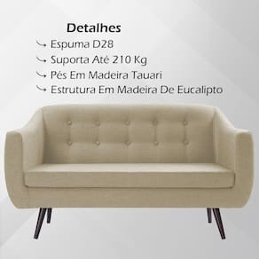 Sofa 2 Lug Pes Tabaco 135 cm 7017, uma peça com design marcante, confortável e resistente, que deixará seu ambiente muito mais elegante. Estrutura em Madeira de Eucalipto e Madeira Tauari, com pintura em acabamento (Fosco). Composto por encosto e assento estofados com espuma D-28 de altíssima qualidade e procedência, encosto com botonês, que dará um toque contemporâneo em sua decoração, revestimento em Tecido Resistente, e conta com pés de madeira cor tabaco. Suporta até 210 Kg. Ideal para quem prioriza qualidade, sem abrir mão do conforto e beleza no móvel que é a estrela da sala de estar. Este móvel chegará na sua casa separado em 01 volume.