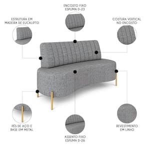Sofá 2 Lugares 135cm Pés Aço Dourado Tamar Linho Cinza Z08 - Mpozenato