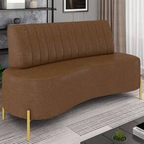 Sofá 2 Lugares 135cm Pés Aço Dourado Tamar Sintético Marrom Z08 - Mpozenato