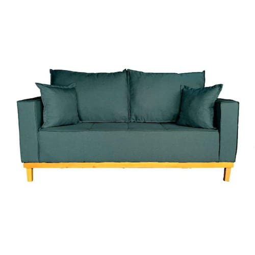 Sofá 2 Lugares 1.40 Beny Base De Madeira Linho - Azul