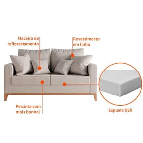 Material Estrutura em madeira de reflorestamento, assento com percintas elásticas. Espumação do assento com espuma D28. Espumação do encosto com plumante 100% silicone.Acabamento em Linho Cotton.