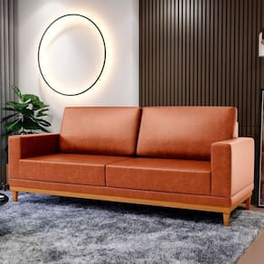 Vamos conhecer os detalhes do Sofá? Sua estrutura e base são produzidos em madeira de eucalipto, super resistentes. Além disso, possui espuma D-26 + plumante no assento e espuma soft + plumante no encosto garantindo conforto e tranquilidade para os seus momentos de descanso. Ah! O tecido é um show à parte! Ele é revestido em Sintético, um material sintético muito ao couro natural, confeccionado com a mais moderna tecnologia fazendo com que seja ível e muito resistente.
