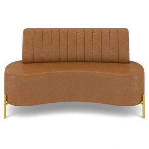 Sofá 2 Lugares 160cm Pés Aço Dourado Tamar Sintético Camel Z08 - Mpozenato