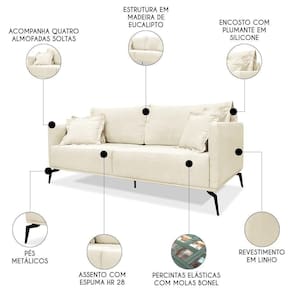 O Sofá 2 Lugares 160cm Pés de Metal Vecchia S06 Linho Pérola, da Mpozenato é uma escolha excelente para quem procura conforto, qualidade e design contemporâneo.