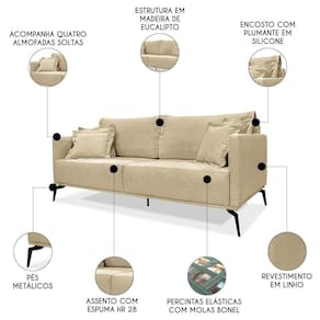 O Sofá 2 Lugares 180cm Pés de Metal Vecchia S06 Linho Dourado, da Mpozenato é uma escolha excelente para quem procura conforto, qualidade e design contemporâneo.