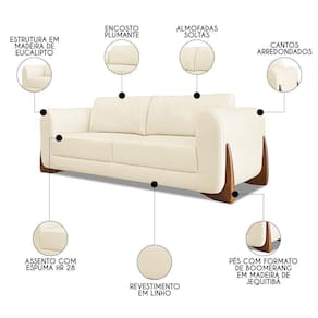 O Sofá 2 Lugares Base de Madeira 180cm Izzy S06 Linho Pérola, da Mpozenato é uma expressão de conforto e elegância, projetada para ser mais do que um simples assento.