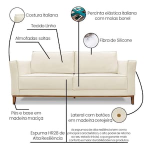 Altura total: 90 cm Largura total: 190 cm Profundidade total: 92 cm Peso: 46 kg Altura do Braço: 72 cm Altura do chão ao Assento: 48 cm Altura do Encosto: 42 cm Profundidade do Assento: 54 cm Largura do Braço: 17 cm Altura dos pés: 13 cm