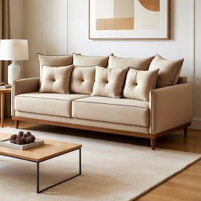 O Sofá Athena combina conforto e design moderno para transformar sua sala em um espaço acolhedor e elegante. Seu estofamento macio e as almofadas com detalhe capitonê garantem uma experiência aconchegante, enquanto a base em madeira traz estabilidade e um toque sofisticado ao ambiente. O visual clean facilita combinações com diversos estilos de decoração, deixando o espaço mais leve, harmônico e convidativo.