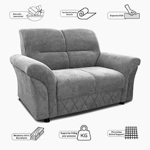 Suporte Extra e Conforto nos Braços O sistema de percintas Extra Support oferece esticamento pneumático, testado com um tensionamento de até 2000 Newtons, equivalente a 200kg por cinta. Os braços do sofá são compostos por espuma D16, proporcionando um toque suave e confortável, ideal para relaxar após um longo dia.